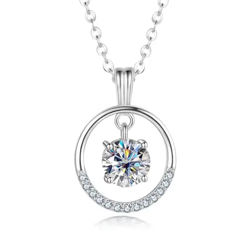 925 Sterling Silver 1ct D Color VVS1 Moissanite Necklace for Women Plated White Gold Moissanite Circle Necklaces Gift