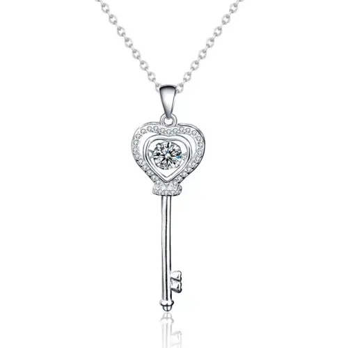 0.5ct D Color Moissanite Key Necklace Women Jewelry S925 Silver Plated Gold Heart Key Pendant Necklace Wedding Gift