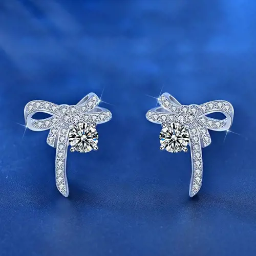 S925 Silver D Color 0.5ct Moissanite Bowknot Stud Earrings Women Fine Jewelry Pass Diamond Tester VVS Moissanite wit Gra