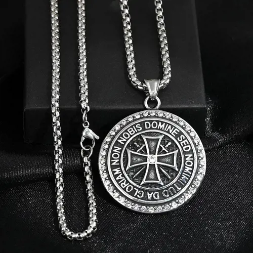 Zircon Cross Round Brand Men Titanium Steel Necklace Hip Hop Punk Street Dance Double Sword Pendant Jewelry Wholesale