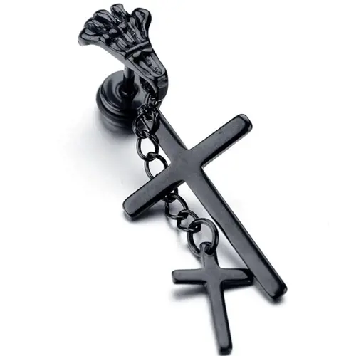 1 Pair Dropshipping Hot New Style Stainless Steel Double Cross Earrings for Fashion Men