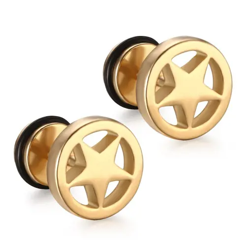 1 Pair Fashion Women Men Color Gold Black Plated Stainless Steel Round Pentagram Star Stud Earrings Small Brincos Jewelry