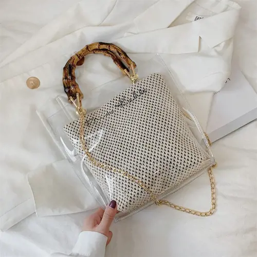 Slub Handle Transparent Bags For Women 2022 Summer Travel Shoulder Simple Crossbody Handbags Lady Beach Hand Bag