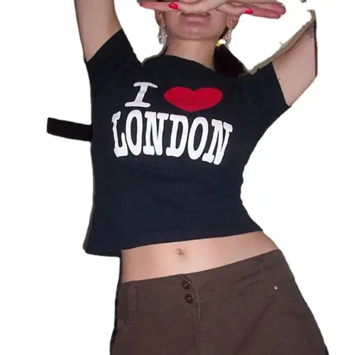 Cutistation I Love London Black Crop Top Y2K Clothes for Women Summer Crew Neckline Slim Baby Tees 2000s Fashion E-girl Outfits