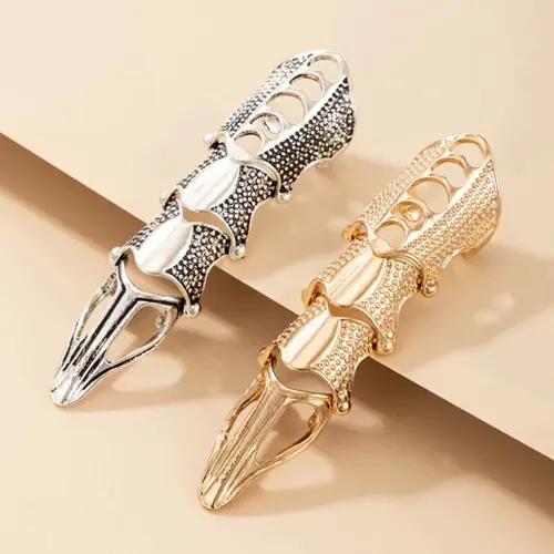 Tocona Vintage knight Skull Armour Knuckle Colorful Joint Ring for Women Men Hollow Geometric Adjustable Party Jewelry Anillo
