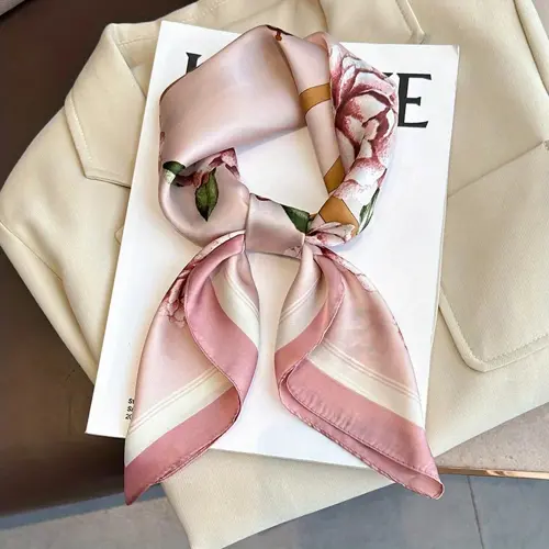 High Quality Luxury Brand Scarf Matching Color Silk Scarf Summer Women 70x70cm Hijab Hair Band Shawl Travel Towel Female Bandana