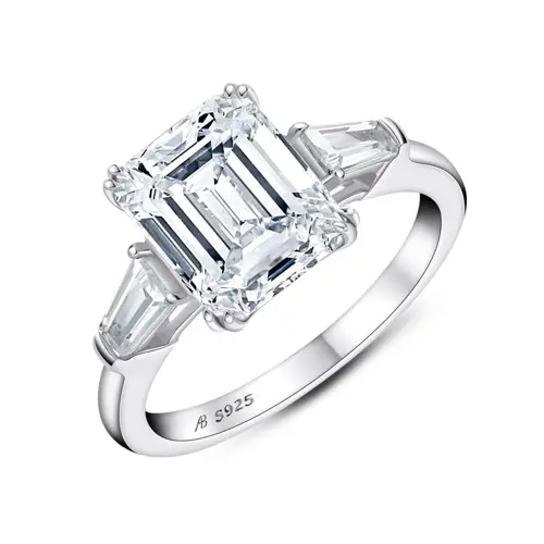 18K Gold Plated 3-Stone Wedding Ring 4.0ct AAAAA Emerald Cut Diamond Engagement Rings For Women