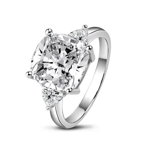 925 Sterling Silver 5.0ct Cushion AAAAA Diamond 3 Stone White Engagement Wedding Ring Wholesale