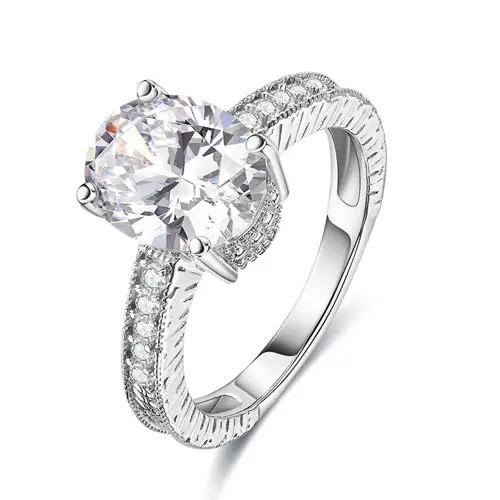 925 Sterling Silver 3ct Oval AAAAA Diamond White Engagement Wedding Ring Wholesale
