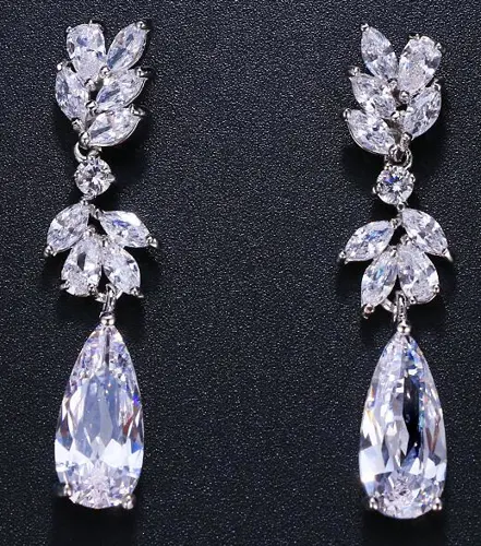 Trendy 3 Colors Leaf Earrings High Quality Cubic Zircon Earrings Women Wedding Jewelry Gift