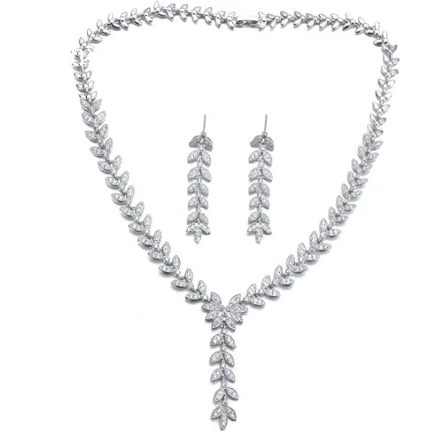 New Fashion Natural Style Leaves Shape Drop Earring And Necklace Cubic Zircon Female Charming Jewelry Sets In Banquet
