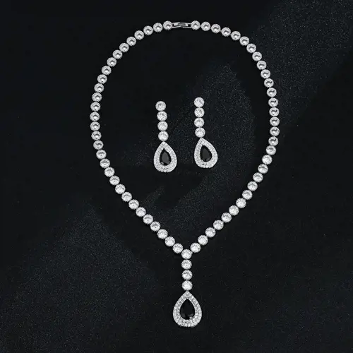 New Arrival Elegant Waterdrop Necklace And Earring Shiny Cubic Zircon Jewelry Set Fashion Banquet Exquisite Dress-Up