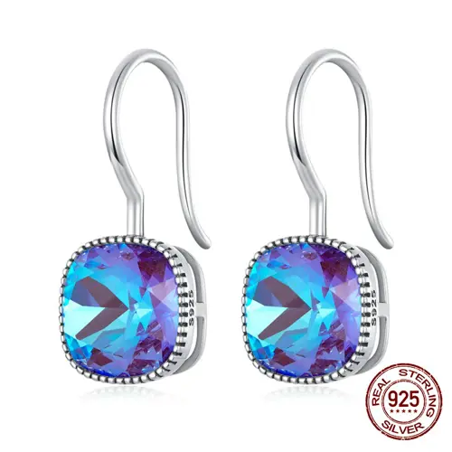 New Real 925 Sterling Silver Mocha Fluorescent Ear Studs Colorful Hoop Earrings for Women Luxury S925 Anniversary Jewelry