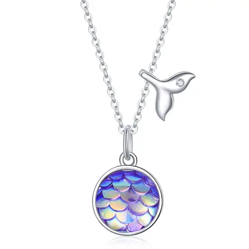 2021 Adjustable 925 Sterling Silver Purple Sea Fish Scale Heart Love Long Chain Silver Necklace For Women Jewelry CQN468