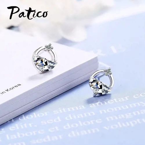 Boutique Lady 925 Sterling Silver Gemetric Stud Earring CZ Cubic Zircon Earrings For Women Fashion Jewelry Concise Bijioux