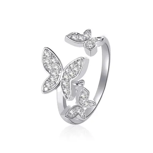 Vintage Metal Butterfly Ring for Women Open Adjustable Ring Fashion Sweet Diamonds Ring Exquisite Women Party Jewelry Gift