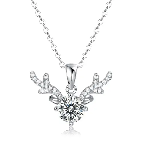 S925 Silver Real 1 Carat D Color Moissanite Antlers Necklace for Women Fine Jewelry Moissanite Necklace Birthday Gift