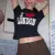 Cutistation I Love London Black Crop Top Y2K Clothes for Women Summer Crew Neckline Slim Baby Tees 2000s Fashion E-girl Outfits