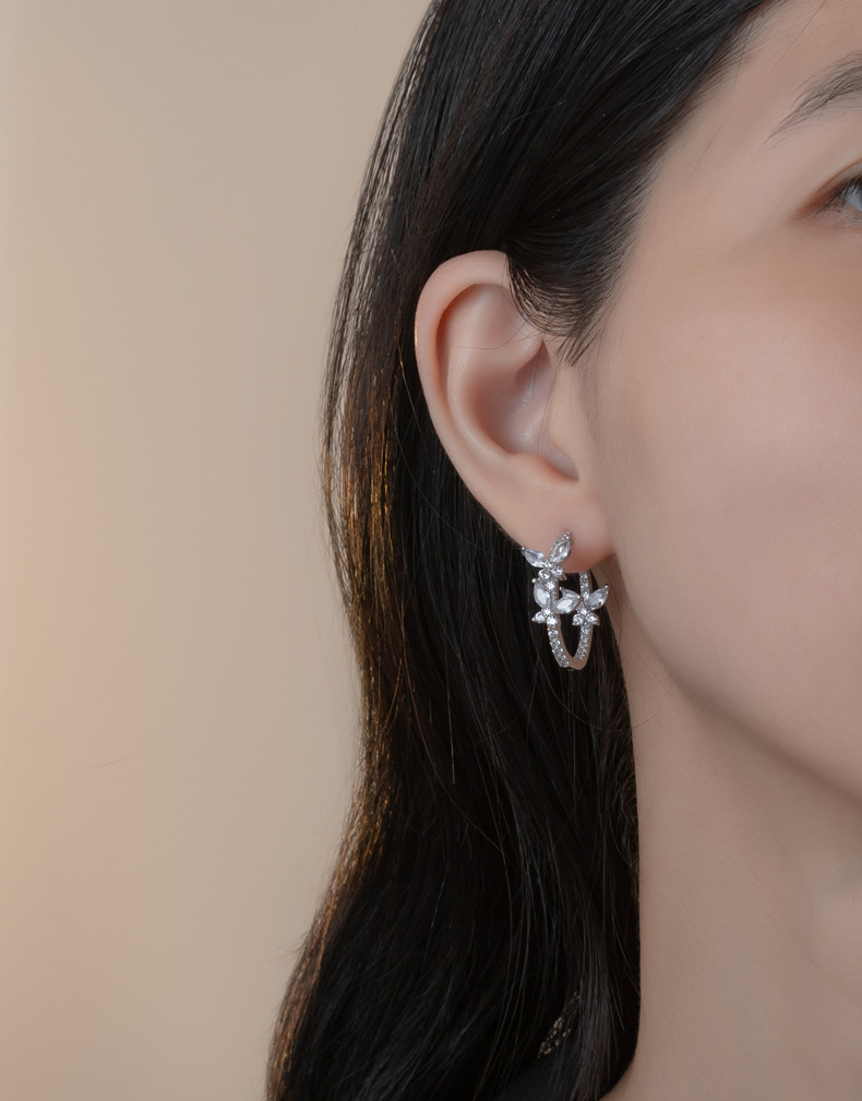 2023 New Butterfly Full Diamond Earphones for Women S925 Pure Silver Ear Studs, European and American Niche Design