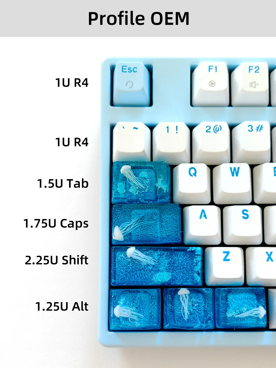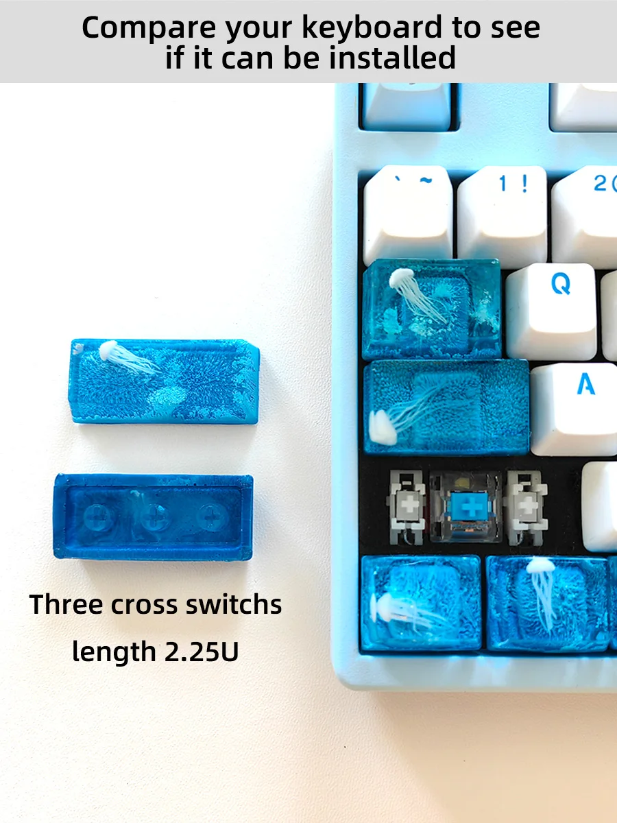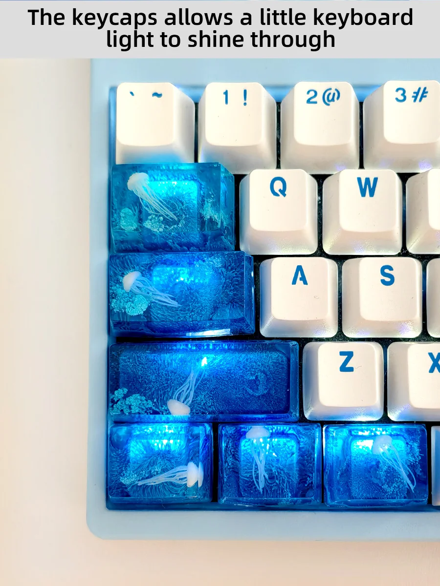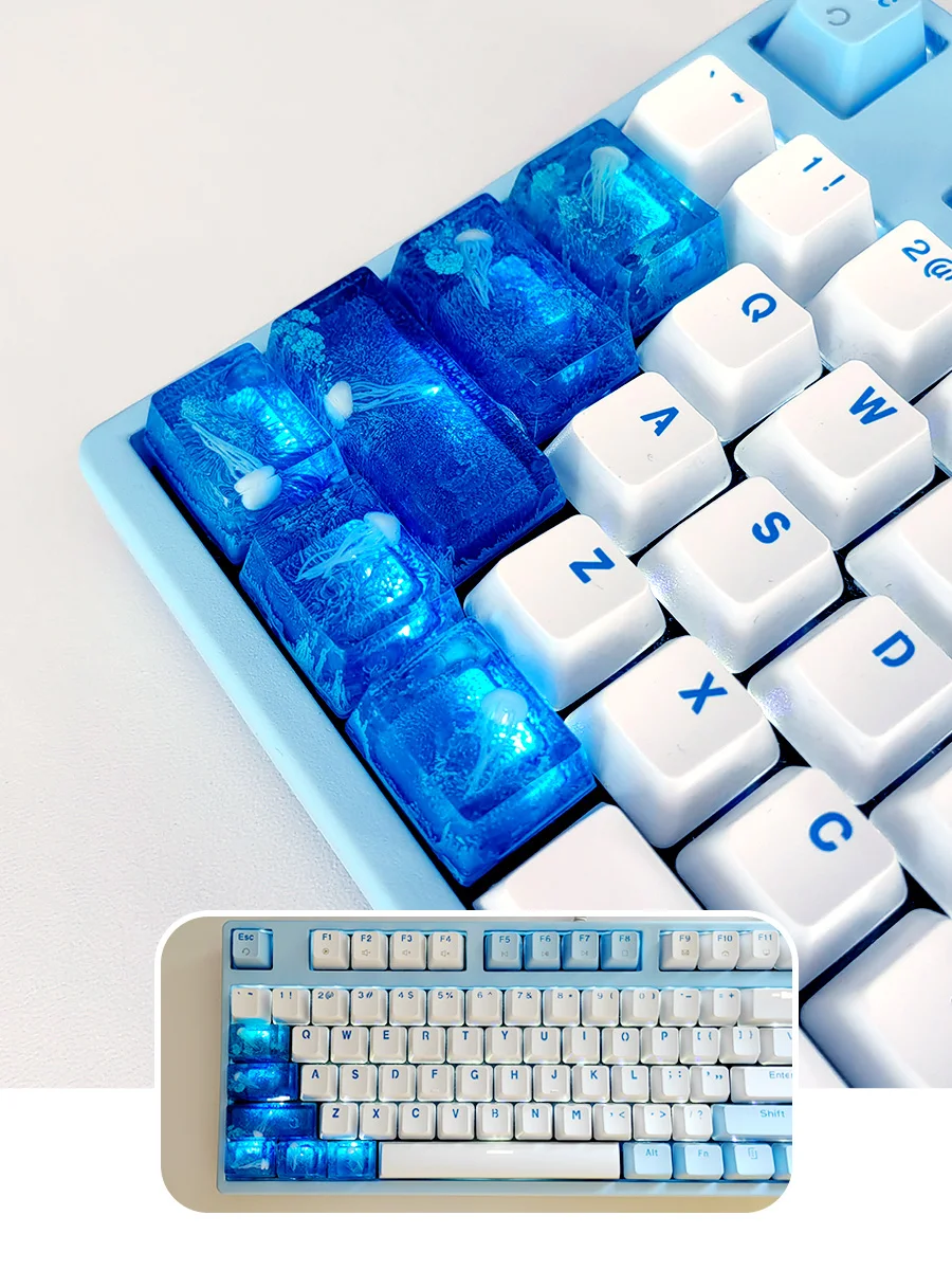 Jellyfish Key Cap Handmade Crystal Transparent Ocean foam Blue Cute Function Key Position Mechanical Keyboard Key Cap ESC TAB
