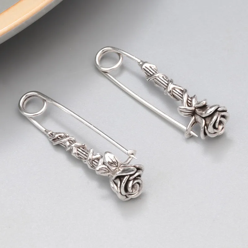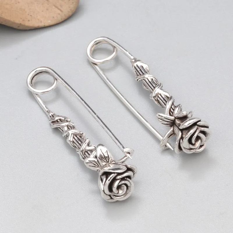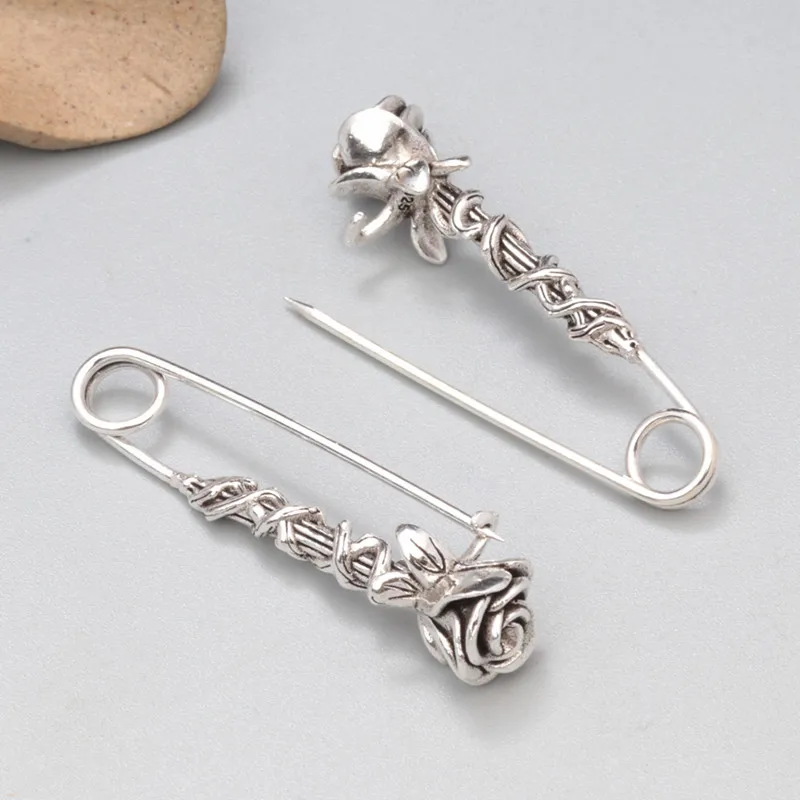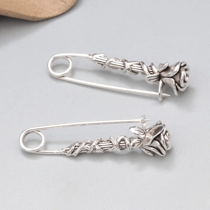 BOCAI New Real S925 Silver Original Rose Pin Vintage Chic Fashion Simple Women's Brooch Accessories Christmas Gift