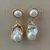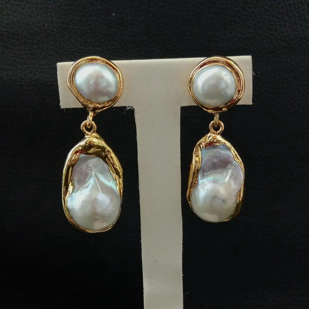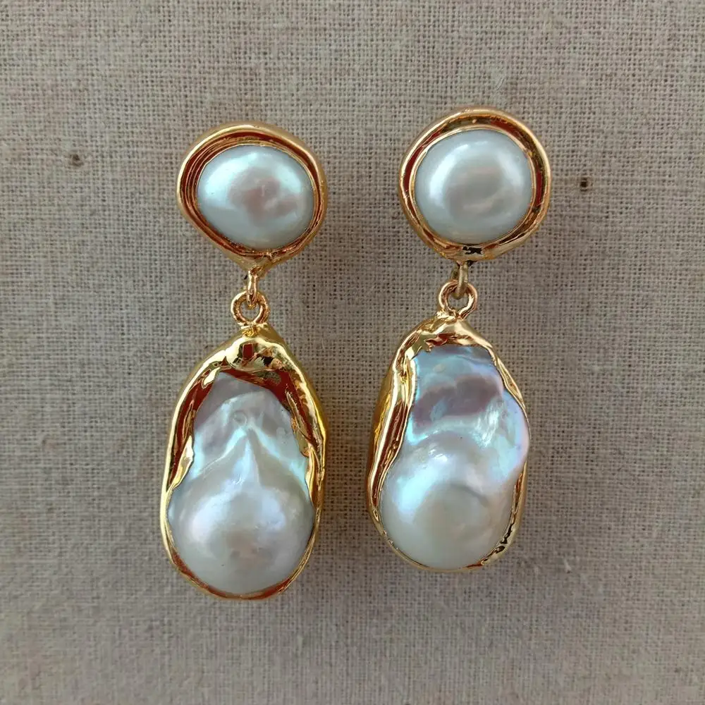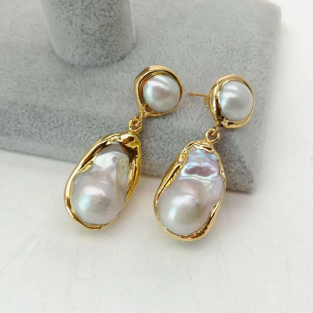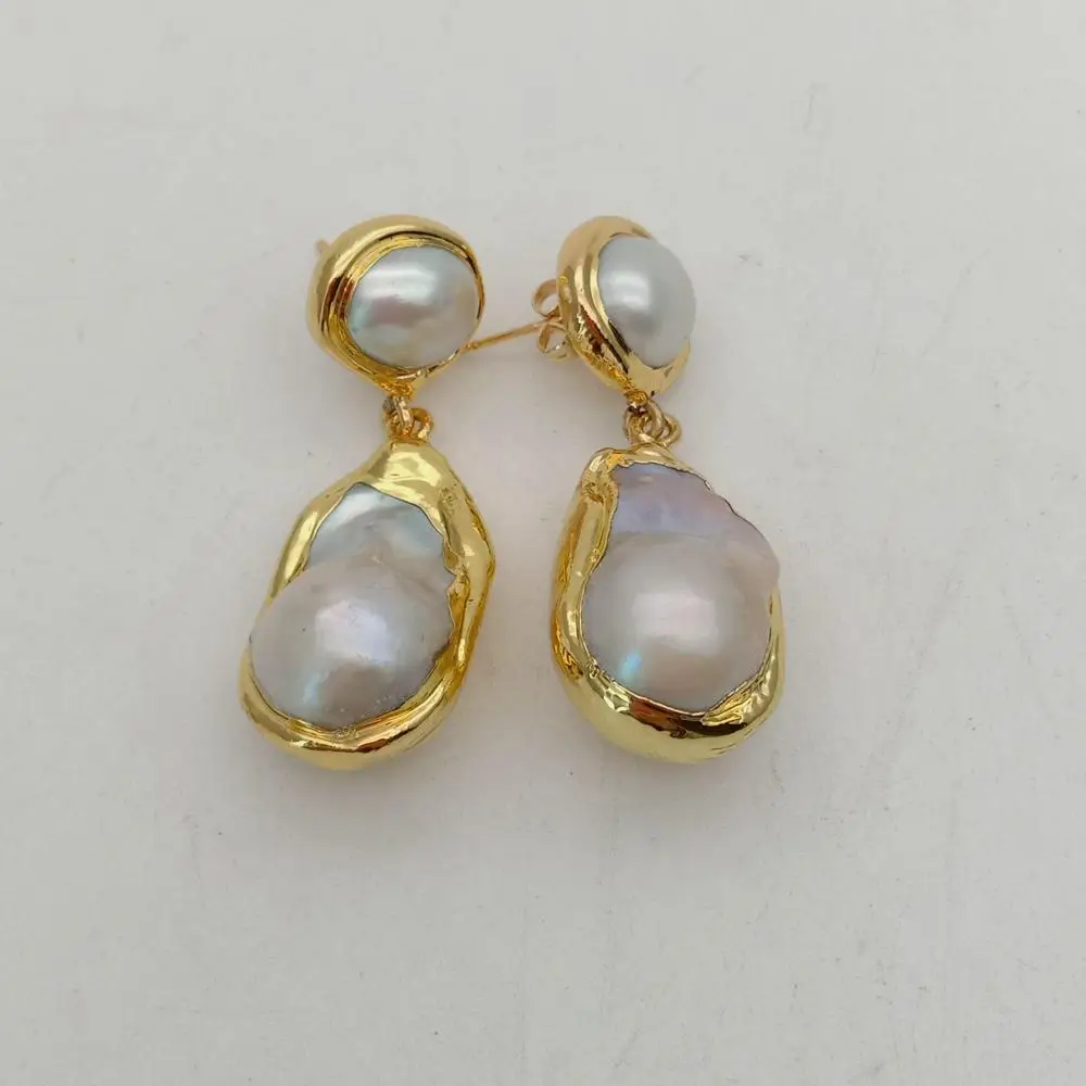 White Keshi Pearl Gold color Plated Stud Earrings Nucleated Flameball Baroque Pearl earrings luxury wedding for women
