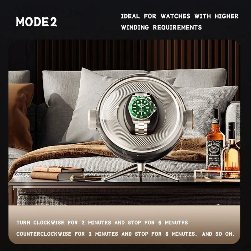 【Excellent Customer Service】 Thank you for your support of our products. If you have any questions, please contact us and we will do our best to accommodate your needs. Information: *Dual-mode one-touch switching: More suitable for your favorite watch. Short press the switch to switch modes, there is always a suitable one for you. - Mode 1 Suitable for most automatic mechanical watches Turn clockwise for 5 minutes and stop for 40 minutes. Turn counterclockwise for 5 minutes to stop for 40 minutes, and so on - Mode 2 Suitable for watches with higher winding requirements for watches with higher winding requirements Turn clockwise for 2 minutes and stop for 6 minutes. 2 minutes counterclockwise and 6 minutes stop, and so on.