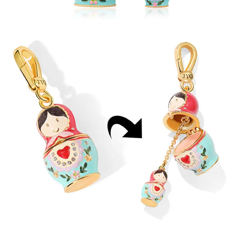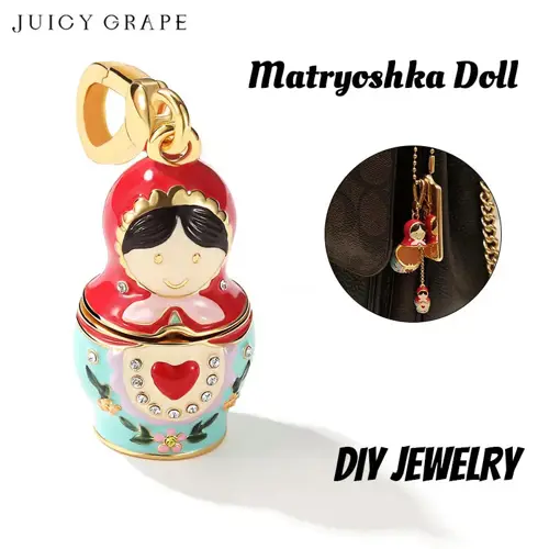 Juicy Grape Matryoshka Doll Key Chains For Woman Bag Charms Hand Painted Enamel Russian Doll Necklace Pendant Fashion Jewelry