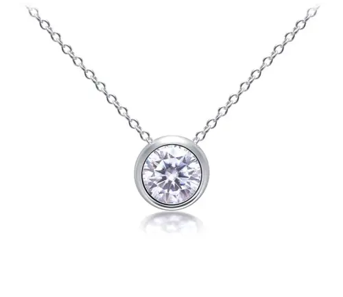 Moissanite Pendant Bezel Setting D color Round Excellent Cut 1CARAT 6.5MM Gift for Women Pendant Necklace Plated 14K White Gold